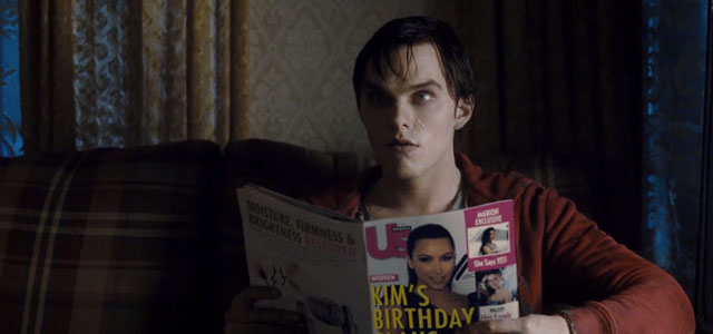 Hoult: I read the book after I got the part. I read the script first, liked that, met Jonathan, got the role, and then read the book as kind of a little bit of extra knowledge. It’s great, really well written and gives insight into a lot of things the script couldn’t—the feelings, the thoughts, it’s all in there. The book is very different – for example, R has a zombie family in the book. But the script, a lot of the time, can condense that and make it a lot more streamlined for me to get my head around.