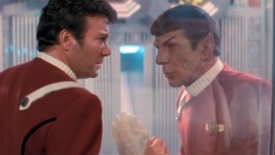 I’m sure if you called Abrams, Orci, Kurtzman, and Lindelof on the thievery, they’d defend it as not just homage, but a clever “alternate timeline” echo. You see, they might say, by playing out the same events only with the Kirk and Spock roles reversed, they’re commenting on the new nature of Kirk and Spock’s relationships, on the idea that across timelines and alternate universes, not just themes, but certain events remain constant, if somewhat altered.