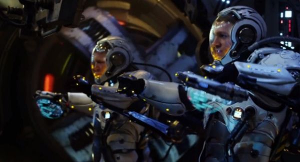 pacific-rim-rob-kazinsky-idris-elbaElba gets to keep his British accent for a change, but Hunnam’s also British, and while he’s been working in Hollywood for a decade, again it’s hard to determine if his performance is meant to be tongue in square jaw or if he thinks all hard-bitten American heroes should talk as if Clint Eastwood was gargling with Warren Oates. (It doesn’t help that the once Bowie-lithe Hunnam is now all Sons-of-Anarchy beefed up, making his face look like Jason Segal decided to go as Val Kilmer for Halloween.)