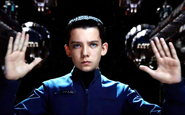 The film, of course, adapts Card’s 1985 “shocking” and “disturbing” novel about pre-teen children in the future being recruited and trained to launch a preventive strike on the mysterious insectoid alien beings that unsuccessfully tried to invade Earth a few generations earlier. Young Andrew “Ender” Wiggins (Hugo’s Asa Butterfield) is singled out by head of the military program Colonel Graff (Harrison Ford) to spend years training with other children on a space station, learning and being sometimes brutally tested on battle tactics and strategy.