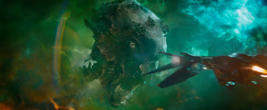 There’s plenty more good stuff in Guardians, from hilarious performances by Saldana and Bautista to the endless soft-hearted charm of the Diesel-voiced tree creature Groot. And Marvel fan-boys and –girls can revel in a huge haul of comic-continuity nods: we meet the Kree, Ronan the Accuser, the Collector, Thanos, the Nova Corps, the Infinity Stones/Gems/Gauntlet, and even Cosmo the Russian Space Dog, and we take a stunning tour inside Knowhere, the outpost inside a dead Celestial’s skull. (We even see a little flashback to a Celestial in action.) Oh, and yes, there’s a certain foul/fowl Cleveland denizen who’s trapped in a world he never made.
