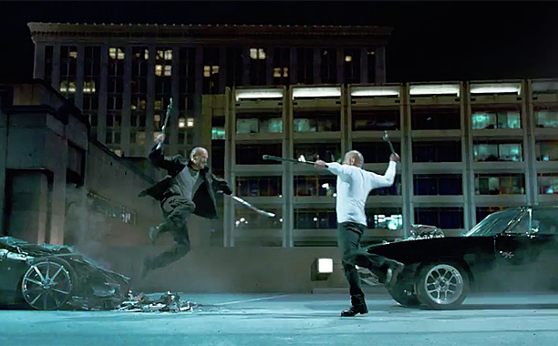 Unlike say Bond or Optimus Prime, Diesel’s Dominic Toretto and company always howl their way through their completely cray-cray four-wheel escapades (which in the new film include driving cars out of planes, leaping them from skyscraper to skyscraper, hurling them off cliffs, and just plain smashing them into each other headfirst in some sort of 8-cylinder joust-turned-failed-game-of-chicken) with complete and utter “oh holy f**k!” disbelief.